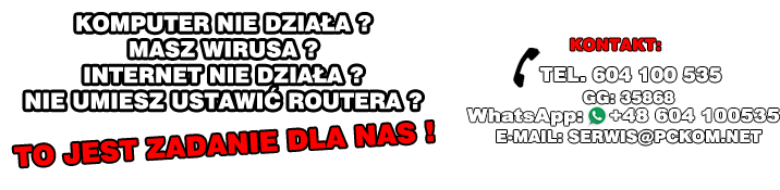 Rzetelnie, fachowo, zawsze na czas - serwis komputerowy w Poznaniu Luboniu. Nasza wiedza i doświadczenie gwarantują, że serwis komputerowy i naprawa komputera będą wykonane solidnie i na czas. Naprawa komputera wykonywaliśmy już dla największych firm w Poznaniu. Usługi serwis komputerów wykonujemy przy zachowaniu najwyższych standardów w Poznań i Luboń. Każde zlecenie usług naprawa komputera lub serwis jest wyceniane indywidualnie. Dla stałych klientów atrakcyjne rabaty. Jeśli serwis komputerowy w Poznaniu Luboniu to właśnie my. Nam możesz zaufać. PcKom.net - Serwis komputerów Poznań Luboń.